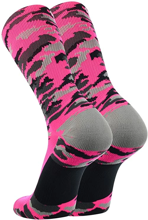 TCK Woodland Camo Athletic Performance Crew Socks are a must have for your next game, outing, or practice. Featuring moisture control yarns, breathable mesh, ergonomic cushion, arch compression, and a double welt top, they provide maximum athletic performance. These socks are suitable for both boys and girls and come in youth and adult sizes. Our crew socks are great for basketball, football, lacrosse, wrestling, volleyball & more!